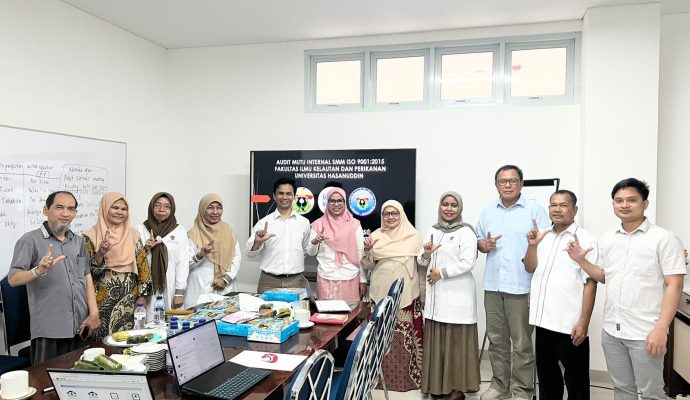 Fakultas Ilmu Kelautan dan Perikanan (FIKP) sukses menyelenggarakan audit ISO SMM 9001:2015 yang dilaksanakan pada tanggal tanggal 24 Juni 2024. Audit ini dilakukan oleh tim auditor internal Universitas Hasanuddin yaitu Prof. Dahlang Tahir, M.Sc. dan Dr. Eng. Ir. Wardi, ST., M.Eng. Tim auditor ini memiliki tugas untuk memastikan sistem manajemen mutu di FIKP sesuai dengan standar internasional.